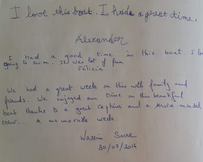 Thank you for yet again a wonderful holiday in your beautiful country. Your boat has become home away from home for all of us. The choice of bays was fantastic, the crew amazing and the food (unfortunately) delicious. We look forward to seeing you again next year.